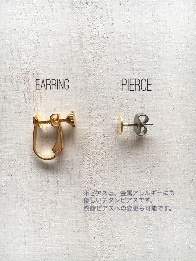 【金具は、チタンピアス・樹脂ピアス・ネジ式イヤリング・クリップ式イヤリングからお選び頂けます。14kgfピアスへの変更は+500円で承っております。ご希望の際は金具選択欄よりご選択ください。】