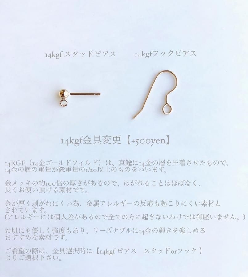 【金具は、チタンピアス・樹脂ピアス・ネジ式イヤリング・クリップ式イヤリングからお選び頂けます。14kgfピアスへの変更は+500円で承っております。ご希望の際は金具選択欄よりご選択ください。】