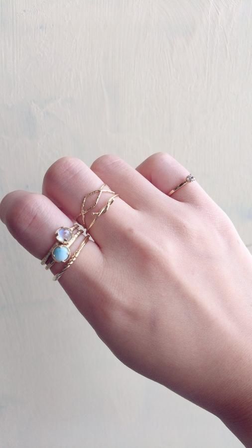ラリマー 真鍮 hammered Ring