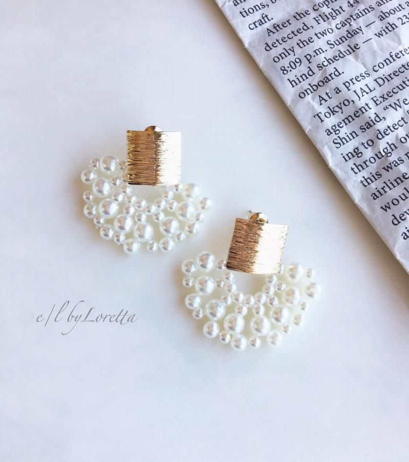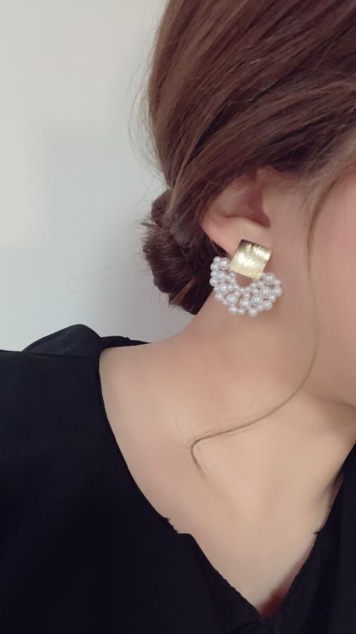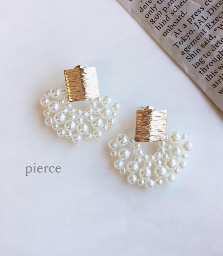 Gold square plate pearl pierce/earring 011119064