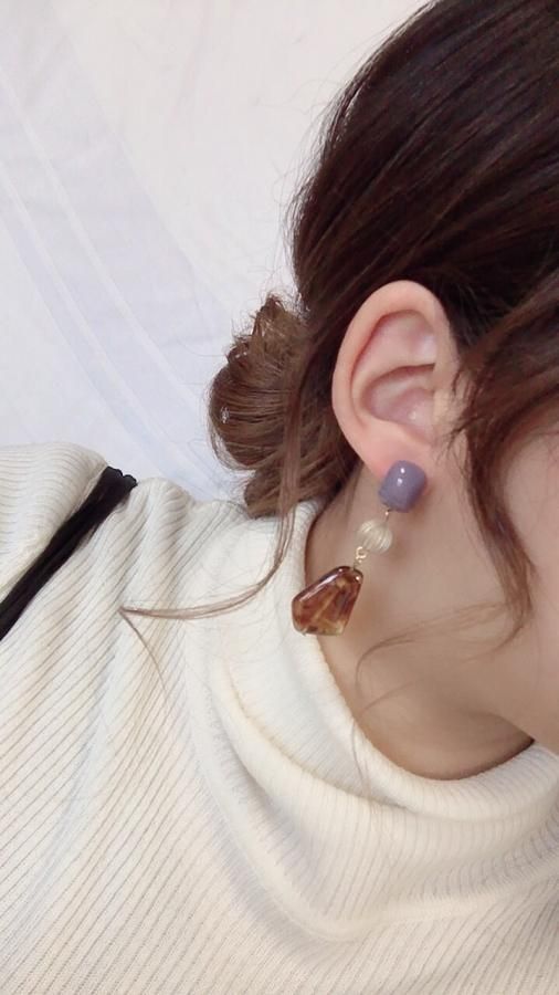 ¡Ú12/9(sat)12:00~Order Start.¡ÛAsymmetry color pallet pierce/earring (Beige ¡ß Pinky brown) [cc]