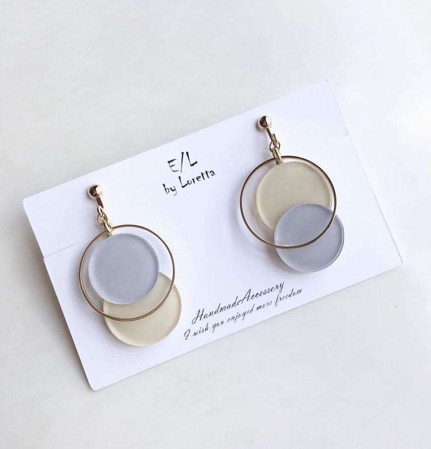 Asymmetry color pallet pierce/earring(Light gray × Ivory) 009900711