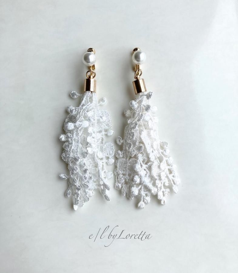 Color Square mat flower tassel pierce/earring(Off-white) [cc]