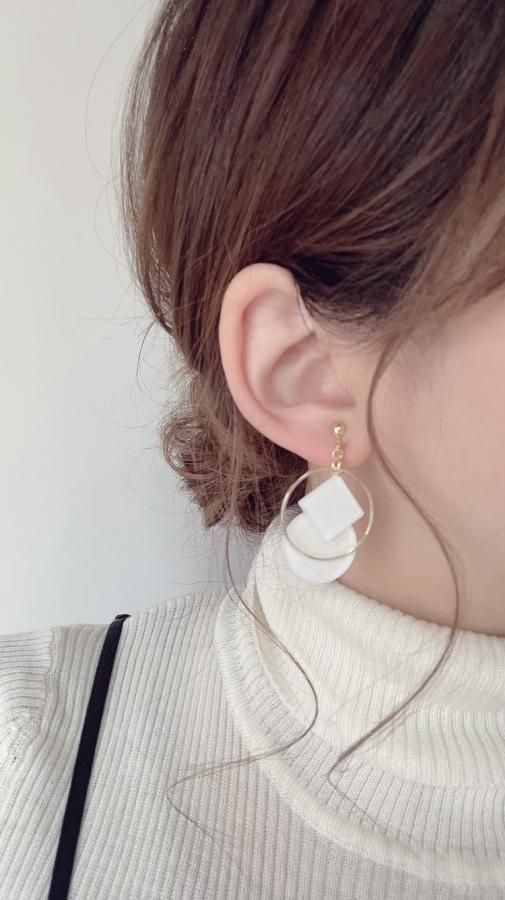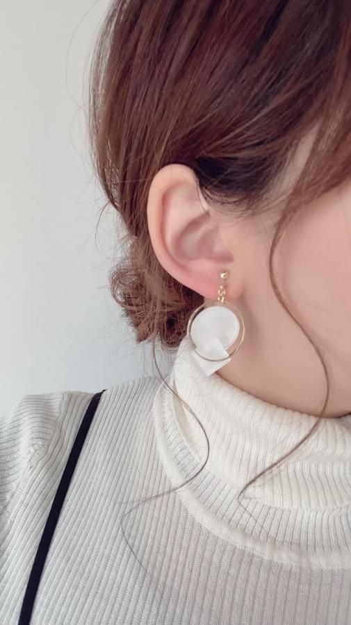 Mini circle marble plate pierce/earring(Off-white) [cc]
