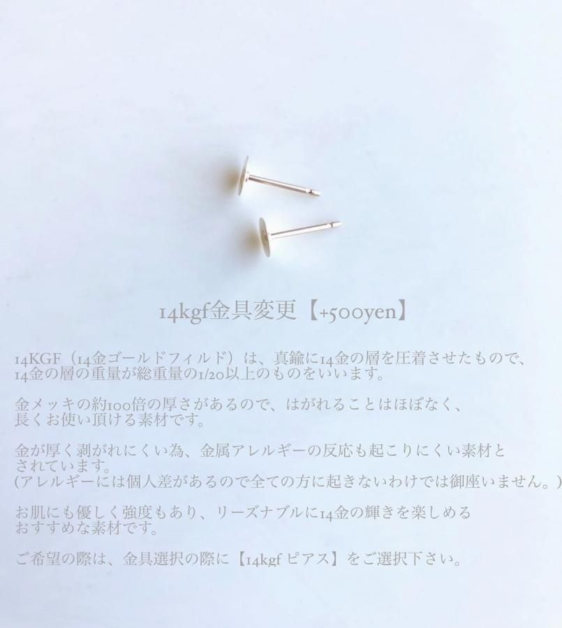 【金具は、チタンピアス・樹脂ピアス・クリップ式イヤリングからお選び頂けます。14kgfピアスへの変更は+500円で承っております。ご希望の際は金具選択欄よりご選択ください。】