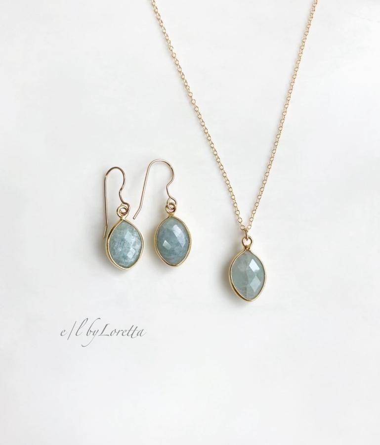 アクアマリン 14kgf marquise necklace & pierce/earring SET
